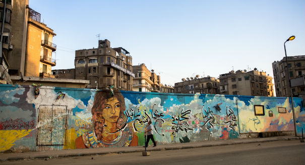 باتت شوارع القاهرة الواسعة، التي كانت من قبل مسرحاً لمشهد ثقافي مزدهر، الآن في وضع مزرٍ بسبب الإهمال وتغطّيها طبقة سميكة من الغبار والسخام،. على مرمى حجر من الجدارية، يقع مسرح قصر النيل الذي كان يستضيف من قبل حفلات المطربة الأسطورية أم كلثوم، لكنه أصبح شبه مغلق مؤخراً. إزاء هذا الواقع المتردّي، قام الفنّانون في 27 حزيران/يونيو الماضي بتنظيف الجدار من الغرافيتي والطلاء النافر وإعلان عقاري كبير. يقول أبو بكر "أصبح كل شيء قبيحاً جداً في مدننا على مر السنين. يجب أن نعطي الناس فرصة لتقدير الجمال من جديد".