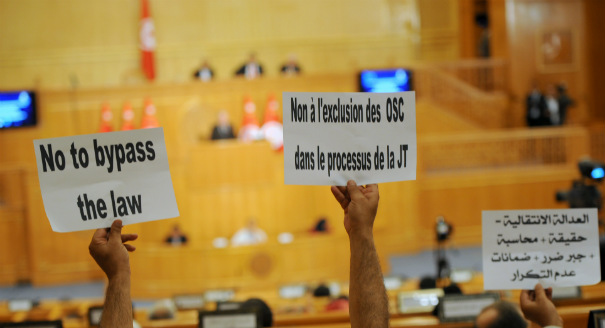 بيد أن اقتراح الرئيس جعَل أنصار العدالة الانتقالية يصطفّون إلى جانب هيئة الحقيقة والكرامة. حتى المنظمات الأهلية والأحزاب السياسية التي لاتزال تختلف في الرأي مع أعضاء الهيئة، أبدت في العلن معارضتها لمشروع القانون ودافعت عن الهيئة7. لقد رفع المعارضون في مجلس النواب الصوت إلى حد ما تعبيراً عن رفضهم لمشروع القانون، وكذلك أعلن الاتحاد العام التونسي للشغل، وهو اتحاد نافذ، معارضته لمشروع القانون. تحت تأثير الضغوط، أبدى السبسي رغبته في التوصّل إلى إجماع حول المسألة - لكن مع تأييد حزب نداء تونس لمشروع القانون وعدم معارضة النهضة له في العلن، لاتزال المعارضة تواجه تحدّياً جدّياً إذا كانت تأمل في إسقاطه.