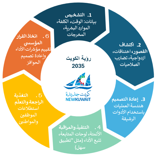ومن خلال دمج البيانات التي توفرها حلقات التغذية الراجعة المستمرة في السياسات وآليات تقديم الخدمات، يمكن للتحليلات الحكومية أن تساعد حكومة دولة الكويت على التحول من نهج يركز على التخطيط فقط إلى نهج يركز على التعلم المستمر لتصبح حكومة لا تكتفي بتصميم الإصلاحات بل تقوم أيضاً بتكييفها والتكيف معها بالاعتماد على أدلة الأداء.