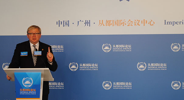 The Imperial Springs International Forum (ISIF) held in Guangzhou was a high-level conference that brought together top Chinese and international leaders and practitioners to engage in conversation and advance constructive and informed solutions to today’s critical global security and economic challenges. Through a plenary session, three panel discussions, and two special lunch discussions, the conference explored how China and the world can work together to realize the common opportunities and overcome the possible policy issues that result from China’s rise as a global actor and an Asia-Pacific power.