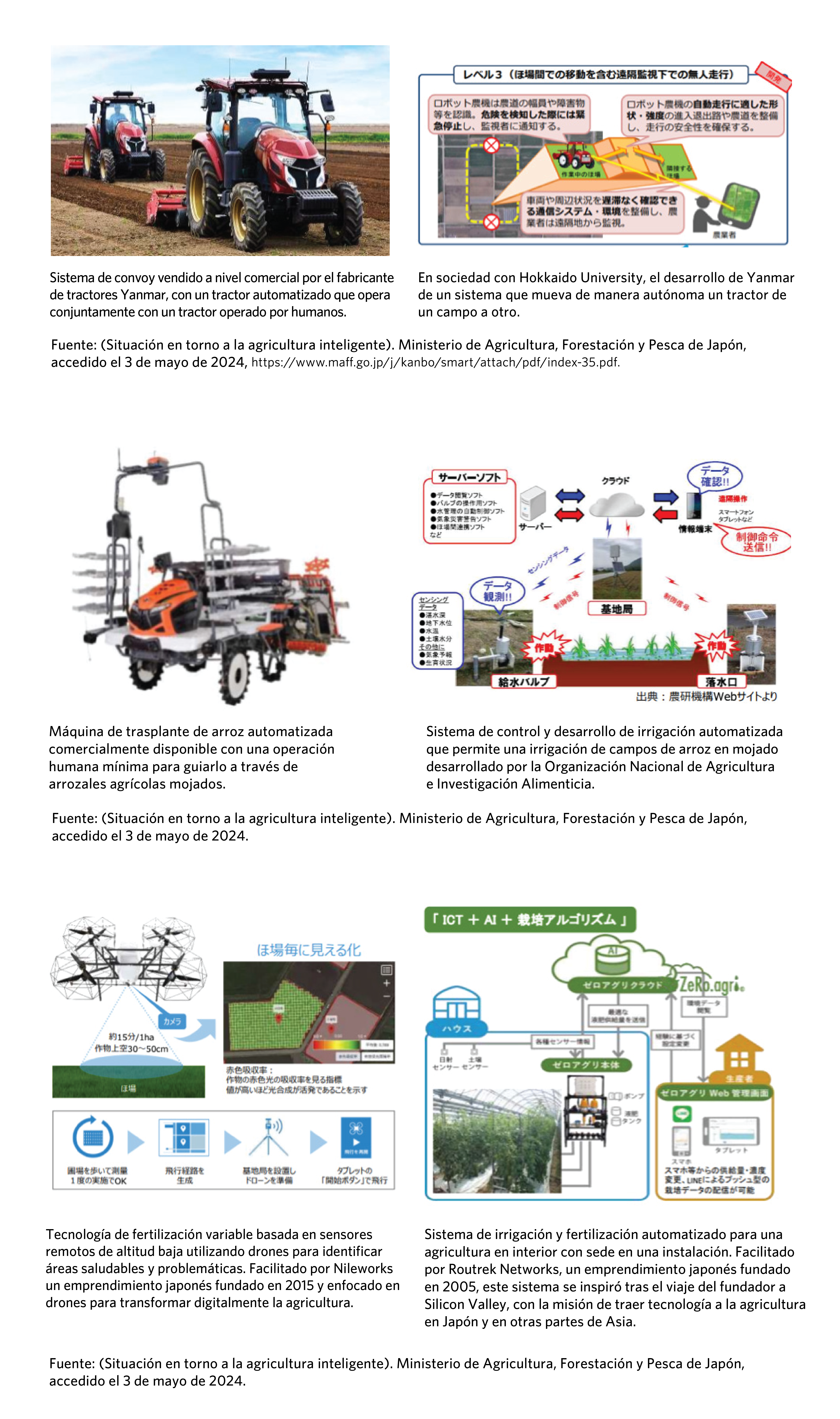 - 52“スマート農業の展開について[Sobre la implementación de agricultura inteligente],” Ministerio de Agricultura, Forestación y Pesca, 9/2021 accedido 5/2/2024, https://www.soumu.go.jp/main_content/000775128.pdf