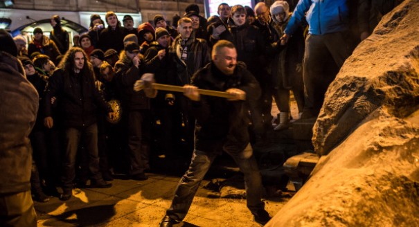The third change has to do with a statue of Lenin. During the early 1990s, giant Soviet-era statues of Lenin were pulled down in most Eastern and Central European capitals. That destruction symbolized the break with Moscow. On Sunday, Kiev finally had its turn. A group of protesters toppled the statue that had for decades stood at the top of Shevchenko Boulevard, not far from Independence Square.