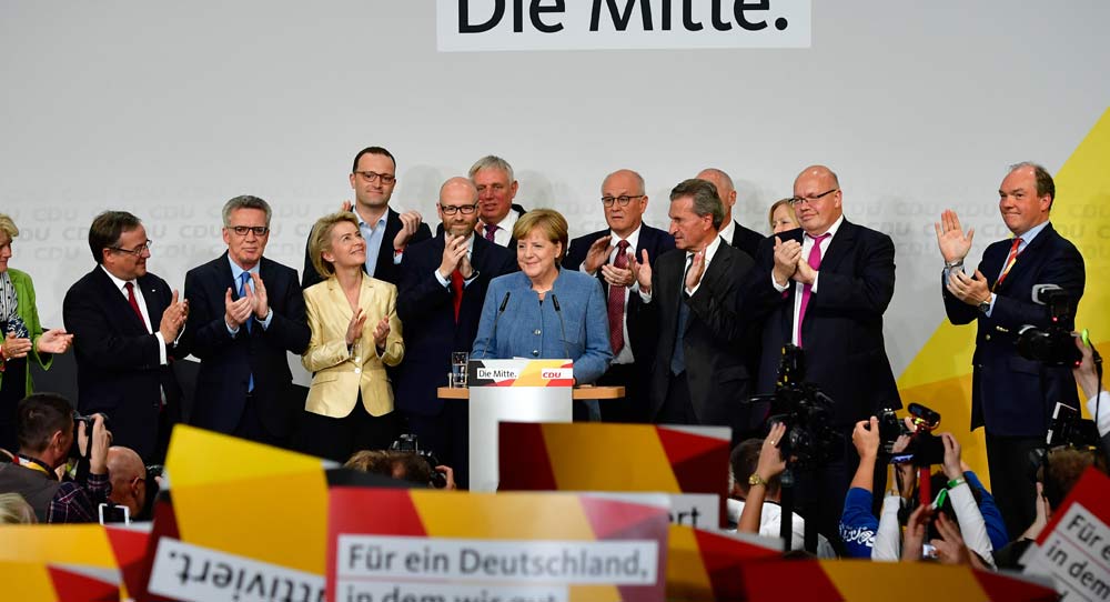 In her brief victory speech at the packed CDU headquarters in Berlin, Merkel was forced to acknowledge how the far-right Alternative for Germany had sapped into the conservative vote, and how over 980,000 supporters defected to the AfD, while 1.3 million voters also went over to Free Democrats. The former voted against Merkel’s refugee policy. The latter voted for a government that would focus on domestic reforms, including the challenges of digitization and climate change, both of which are concerns that the incoming government will have to deal with. Expect big arguments between all four coalition parties over energy policy and on EU issues, particularly on the integration of the eurozone.