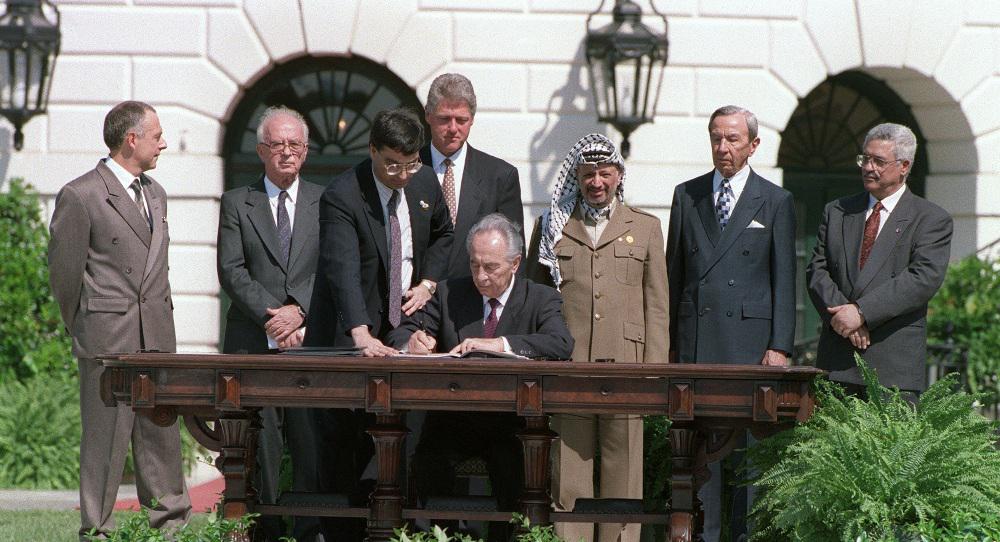 In 1993, leader of the Palestine Liberation Organization (PLO) Yassir Arafat embraced the two-state solution, as did Israel’s then prime minister Yitzhak Rabin. The Oslo Accords were signed and in 1994 the Nobel peace prize was awarded to Rabin, Arafat, and Shimon Peres, who was the brain behind the historic agreement. The idea—a state each for Israelis and Palestinians—was the first plan that made it seem like a solution for an endless, costly conflict between two peoples claiming the same land could be found by mutual agreement.