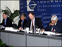 IMGXYZ547IMGZYXOn October 19th, 2006, the Carnegie Endowment for International Peace co-hosted an event with the National Bureau of Asian Research on “Trade, Security and the Emergence of China and India.” The keynote speaker was Ambassador Karan Bhatia, Deputy United States Trade Representative. Other panelists included Michael Chambers, Richard J. Ellings, Devesh Kapur, Minxin Pei, Peter Rutland, Michael Swaine, and Ashley Tellis. This event marked the book launch of “Strategic Asia 2006–07: Trade, Interdependence, and Security,” the sixth volume in NBR’s Strategic Asia series, co-edited by Ashley Tellis and Michael Wills.