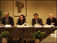 IMGXYZ651IMGZYXNathan Brown presented his paper on Kuwait’s Islamic Constitutional Movement (ICM). The paper is part of series of case studies on Islamist movements in Arab countries. Brown argued that, like many of its counterparts in the Arab world, the ICM emerged primarily as a social movement, with its involvement in politics being secondary. It is precisely the ICM’s identity as a social movement which contributed to its political success. Despite its long history of political participation, however, the ICM often finds itself accused of being too radical by some and co-opted by others. Yet a distinctive feature of the ICM is the degree to which it is integrated in Kuwait’s political space. Brown identified four factors that contribute to this integration: the clear distinction between party and social movement; the dominance of the party’s leadership; a political environment that includes potential partners; and the fact the ICM has been able to focus more on domestic issues than on the regional issues that sometimes dominate the agendas of other Islamist movements. The current political situation in Kuwait, characterized by an opposition-dominated parliament, presents an opportunity for the Kuwaiti opposition to press for further reform. Success, however, is largely dependent on whether the historically disunited and very diverse opposition will be able to maintain unity.