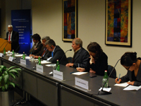 IMGXYZ2914IMGZYXAfghanistan’s future may largely hinge on international efforts from now until 2014. One key issue is the transfer of security responsibility from international forces to a capable Afghanistan National Security Force. Zuhra Bahman, a Kabul-based consultant; Victor Korgun from the Institute of Oriental Studies in Moscow; Assistant Secretary General for Operations of the North Atlantic Treaty Organization Martin Howard; and Clare Lockhart, director of the Institute for State Effectiveness, addressed the critical challenges inherent to the transfer and offered potential strategies for achieving sustainable peace in Afghanistan. Alvaro de Vasconcelos and Luis Peral, both of the European Union Institute for Security Studies, moderated the discussion with Carnegie’s Ashley J. Tellis. This discussion served as the culmination of two days of off-the-record meetings.