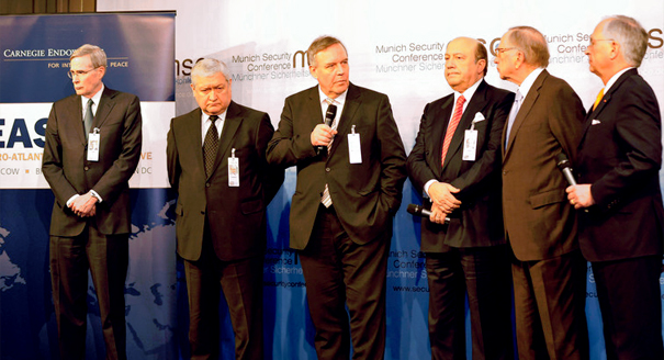 Euro-Atlantic Security Initiative (EASI) co-chairs Wolfgang Ischinger, Igor Ivanov, and Sam Nunn presented the commission’s final report at the 2012 Munich Security Conference. EASI brought together former policymakers, diplomats, generals, and business leaders from Russia, North America, and Europe to look at options to address the region’s faltering security system and to chart a roadmap of practical action that would lead to a more secure future.