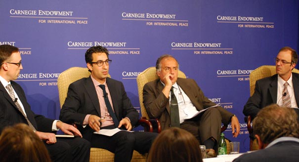 IMGXYZ3788IMGZYXTensions over Iran’s nuclear program continue to fester, unsettling oil markets, raising prices, and adding uncertainty to fragile global economic prospects. Jorg Decressin of the International Monetary Fund, Jamie Webster of PFC Energy, and Carnegie’s Karim Sadjadpour discussed the likelihood of a military attack on Iran, the impact of sanctions, and the macroeconomic implications of high oil prices. Carnegie’s Uri Dadush moderated the discussion.