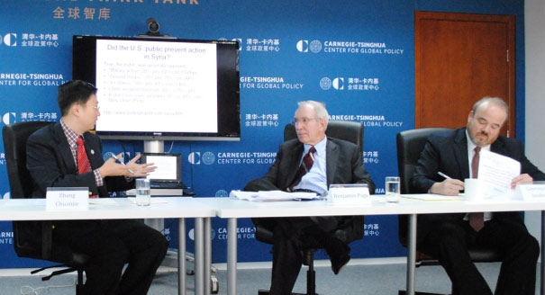 Carnegie-Tsinghua’s Zhang Chuanjie hosted a roundtable discussion featuring Benjamin Page of Northwestern University and Lawrence Jacobs of the University of Minnesota. They discussed the impact of public opinion in U.S. policymaking.