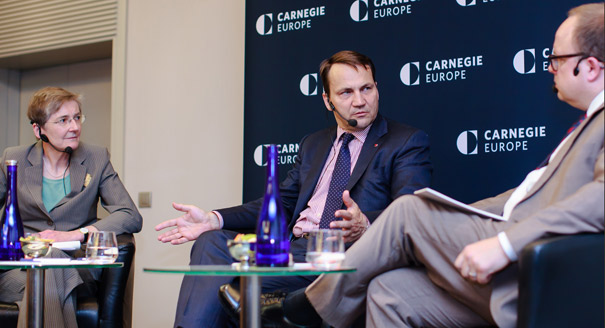 Carnegie Europe was honored to host Polish Minister of Foreign Affairs Radosław Sikorski, for a public Q&A discussion with Judy Dempsey and Jan Techau. The debate focused on the strategic consequences of the Ukraine crisis for European security, the long-term trends and scenarios for the future power balance in wider Europe, and the United States’ role in supporting European defense.