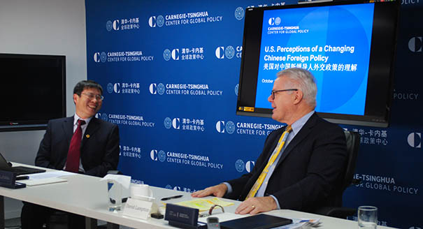 David Lampton presented his observations on the perceptions and reactions within the United States to recent changes in China’s foreign policy. Afterward Shi Zhiqin moderated a discussion. Zhao Kejin also made remarks.