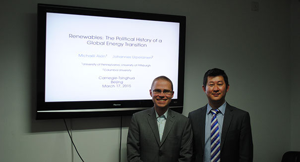 Carnegie–Tsinghua’s Zhang Chuanjie hosted a discussion with Johannes Urpelainen and Wang Tao about what empirical evidence from several countries reveals about the economic and political dimensions of global energy markets. They examined how energy costs, environmental policy, and public opinion influence the viability of the renewable energy sector around the world.