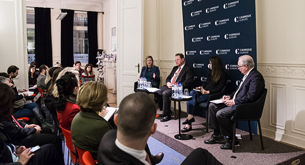 Carnegie Europe hosted a public event with Sarah Yerkes to discuss the findings of her latest paper, coauthored by Carnegie Vice President for Studies Marwan Muasher, “Tunisia’s Corruption Contagion: A Transition at Risk”. Yerkes was joined by Ons Ben Abdelkarim and Michael Köhler. Carnegie’s Marc Pierini moderated.