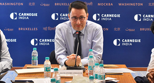 Carnegie India hosted French Ambassador to India Alexandre Ziegler for a private roundtable discussion to explore avenues for furthering cooperation between India and France. Mohan Kumar, chairman of Research and Information System for Developing Countries (RIS), was a discussant and Rudra Chaudhuri, director of Carnegie India, moderated the discussion.