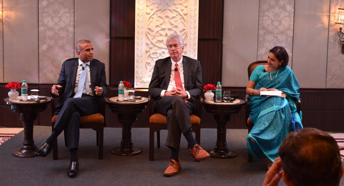 Carnegie India hosted Ambassador William J. Burns for a discussion on his book, with Sunil Bharti Mittal, founder and chairman of Bharti Enterprises. C.K. Birla, chairman of the C.K. Birla Group, delivered the inaugural address. Suhasini Haidar, national editor and diplomatic affairs editor at the Hindu, moderated the discussion.