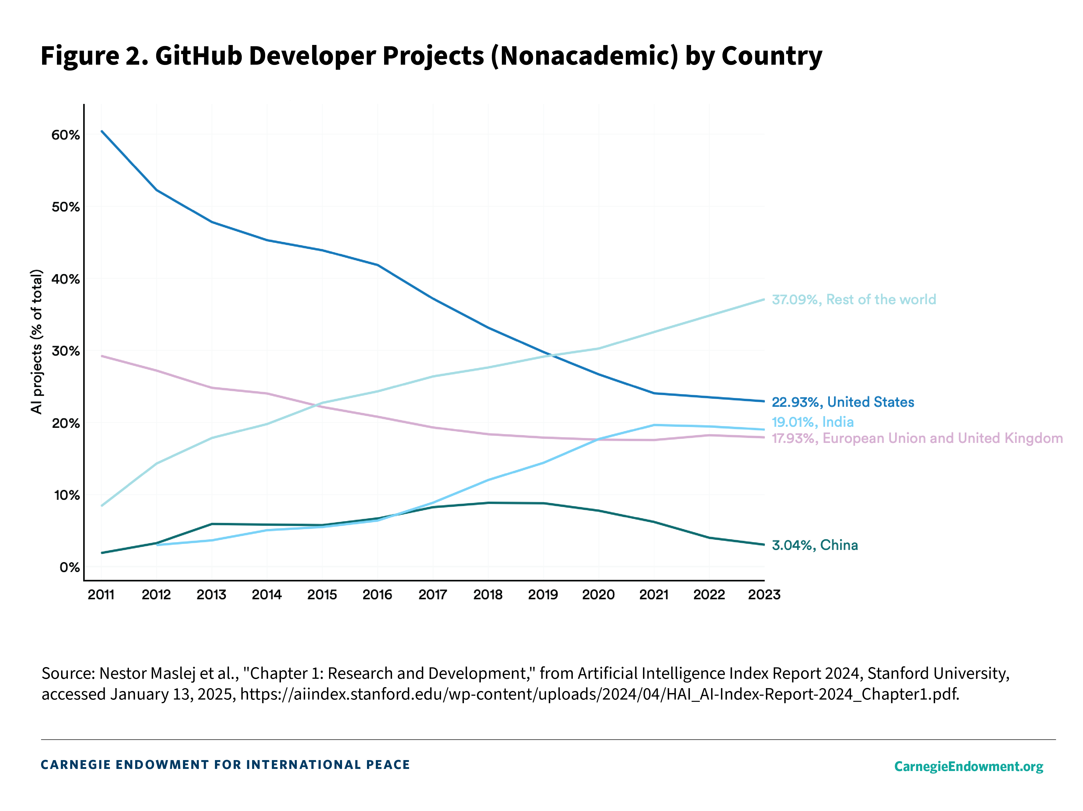 At the same time, other countries—notably, India, Japan, France, Germany, the United Kingdom, Singapore, and the United Arab Emirates (UAE), among others—want to prevent such concentration and are charting their own AI strategies to compete in this arena. These countries are attempting to find ways to avoid being relegated to observer status in the global AI race.