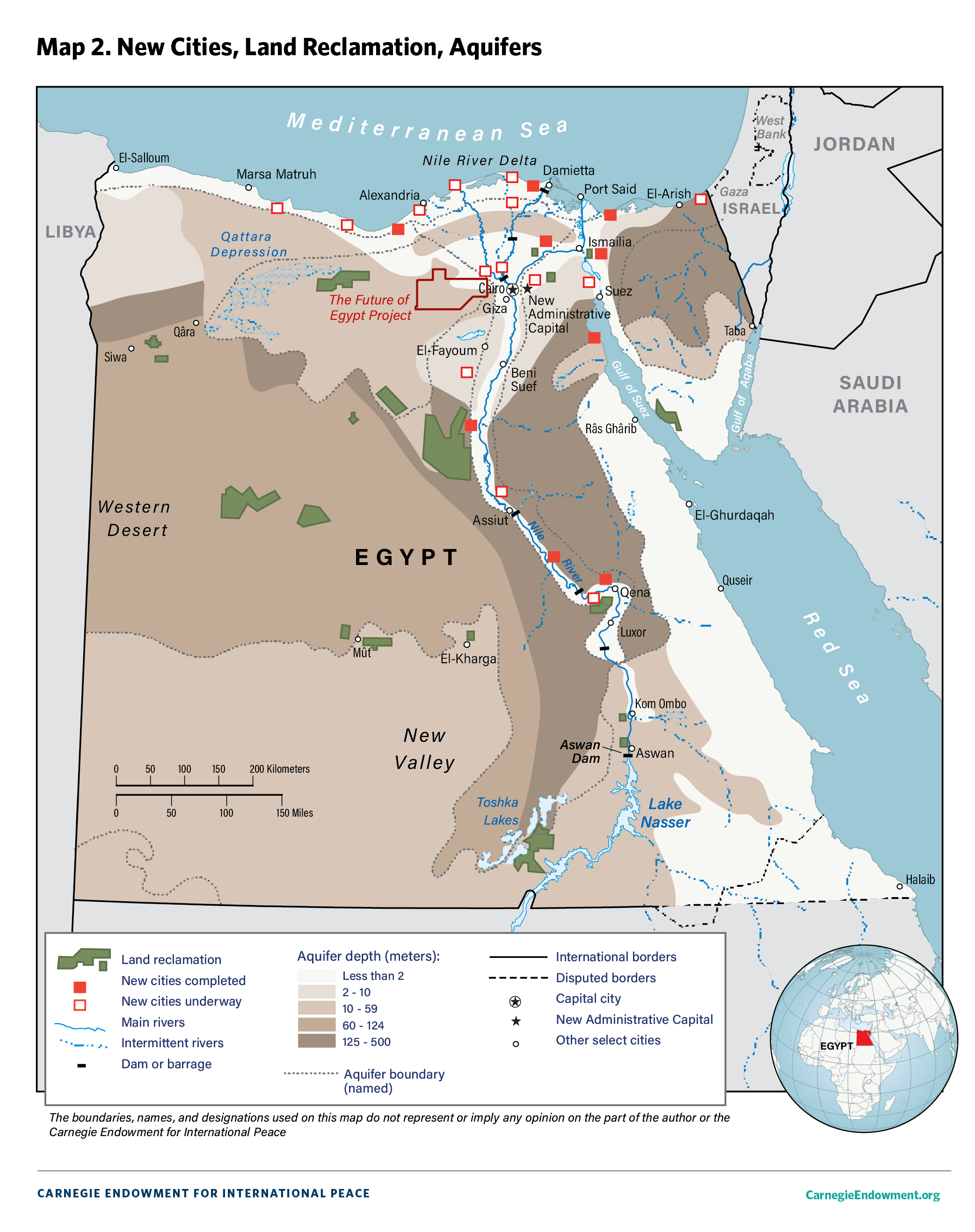 Egypt has a large deficit in housing needed to keep pace with population growth. With 43 percent of its population living in urban areas, a proportion that is expected to grow in both relative and absolute terms, the government has followed a two-pronged strategy to address this need.23 On the one hand, it has announced plans to upgrade slums or relocate their inhabitants to new housing in other areas by mid-2021, at a total cost of 63 billion Egyptian pounds.24 On the other hand, it is constructing or planning 37 new cities at a cost of 700 billion Egyptian pounds (2022 estimate) to absorb a projected population growth of 30–34 million over the coming forty years.25