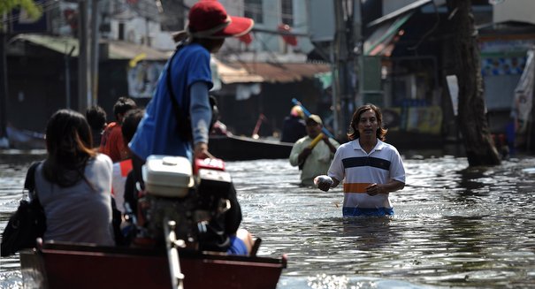 While the current Thai floods have been particularly severe, they weren’t unexpected. Thailand has 25 river basins and 90 percent of annual rainfall occurs from May to October; as a result, floods in Thailand occur almost every year. But many climate change scientists have been predicting that matters are likely to get worse—floods, droughts, and storm surges may increase in frequency and severity in Southeast Asia. Of late, rains in Thailand have been more erratic and more plentiful. In 2010, for example, Thailand faced its worst drought in 20 years, and then extensive flooding later in the year. Making matters worse, Bangkok and the surrounding area—which accounts for 40 percent of Thailand’s GDP—is just one meter above sea level and is sinking gradually, making it highly vulnerable to storm surges from the Gulf of Thailand. The city is ranked among the top 11 Asian mega-cities at risk from climate change. Fortunately, storm surges didn’t strike during the current floods, which were due to unusually heavy rains, or the cost to life and property would have been much greater.