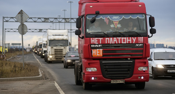 Truckers began blocking highways across Russia in early November. They were angered by a new road tax to be received through a much-resented electronic collection system named Platon. The initial rate of four rubles per kilometer mounts up quickly over Russia’s vast territory, and the stated reason for the new toll—that the money would be used for road repairs—failed to convince, as existing taxes were supposed to pay for that already.