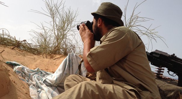 In a eucalyptus grove, we find the corpse of one of them, felled in battle the day before. He was a balding, middle-aged man in an calf-length gown and leather sandals, carrying a small bag of dates to break the Ramadan fast and wearing a plastic Casio watch. A bullet had entered his left eye; another shattered his elbow. “Tunisian or Egyptian,” a Misratan fighter speculated.