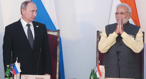 These touristic observations from Russia’s leader camouflage the sensational agenda of the bilateral summit that took place with India on the sidelines of the BRICS Summit. The most important agreements were about India leasing the second Akula-class submarine, the import of S-400 air defence systems, the delivery of 200 multirole helicopters Ka-226T to be partly built in India, the development of the BrahMos missile with a range exceeding 600 km, the manufacturing of four Admiral Grigorovich-class (Project 11356) guided-missile stealth frigates (of which two will be made in India), and cooperation on information security.