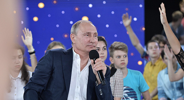 Instead, the children asked their president about school, his favorite music, and being a brat as a child. Putin clearly enjoyed reminiscing about his past and reflecting on historical events, as well as on moral issues like whether children should obey their parents or their teachers. The new format, in short, was tailored to what the president likes to talk about.