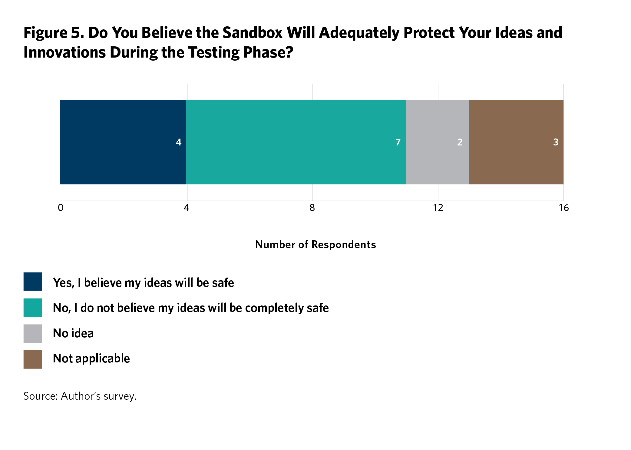 Respondents were asked how confident they were in the safety of their ideas and innovations while participating in the sandbox. Most respondents expressed their discomfort regarding information confidentiality (see figure 5).