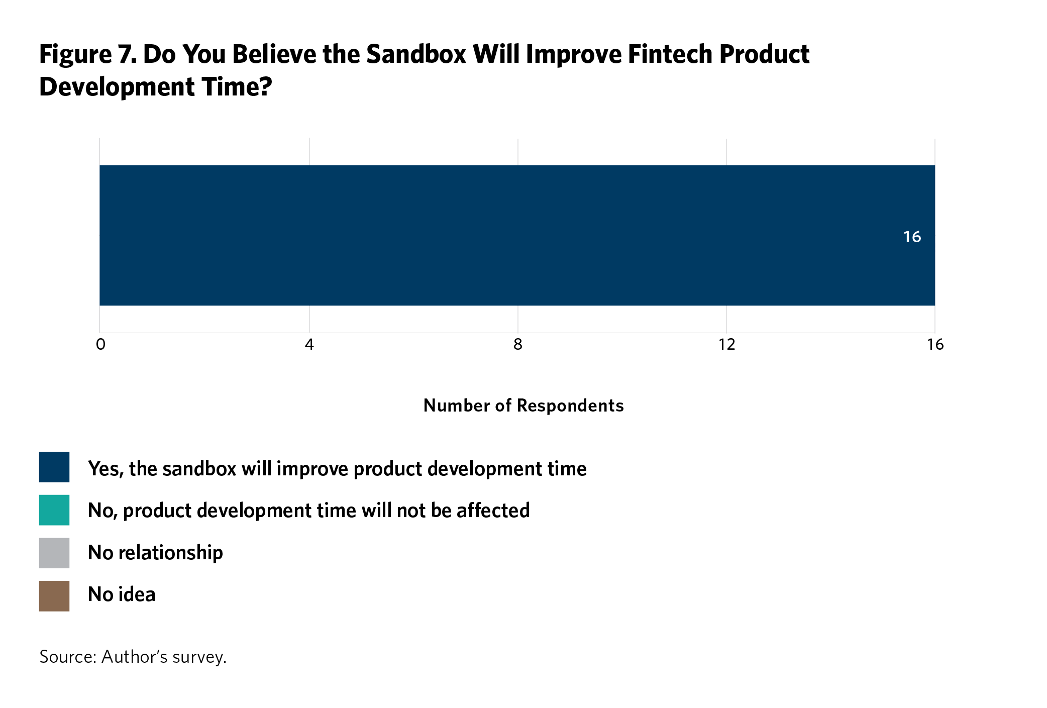Respondents were asked whether they believed the sandbox could help reduce product development time. As shown in figure 7, all participants thought it would. They also indicated that they would be willing to collaborate with peers in developing or refining their innovations through engagement within the sandbox. Most participants believed the sandbox would assist the RBZ in monitoring fintech developments (see figure 2). These responses are good news for developing safe, innovative digital financial services and products.19