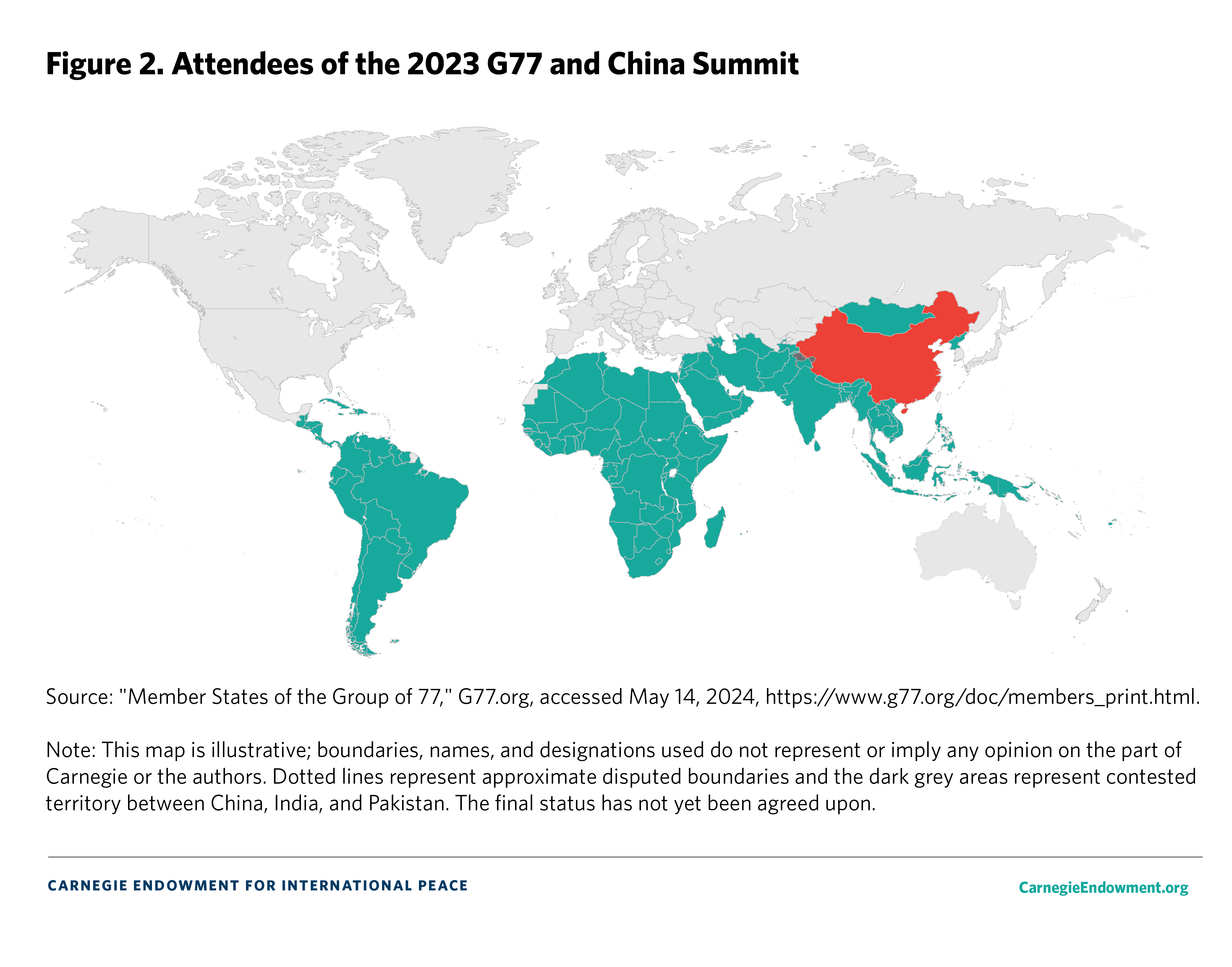 The rising popularity of the Global South term reflects renewed grievances against the global order and the need for those currently disempowered to band together to overhaul it. At the 2024 Munich Security Conference, President Nana Akufo-Addo of Ghana described an inherent instability to the global order produced by “a situation whereby the so-called Global South, where Africa features, is always at the wrong end of the stick in terms of its take-up of global assets.” At the G77 and China Summit in September 2023 (see figure 2), Cuban President Miguel Díaz-Canel echoed decades of NAM, G77, and NIEO rhetoric in declaring that “after all this time that the North has organized the world according to its interests, it is now up to the South to change the rules of the game.”