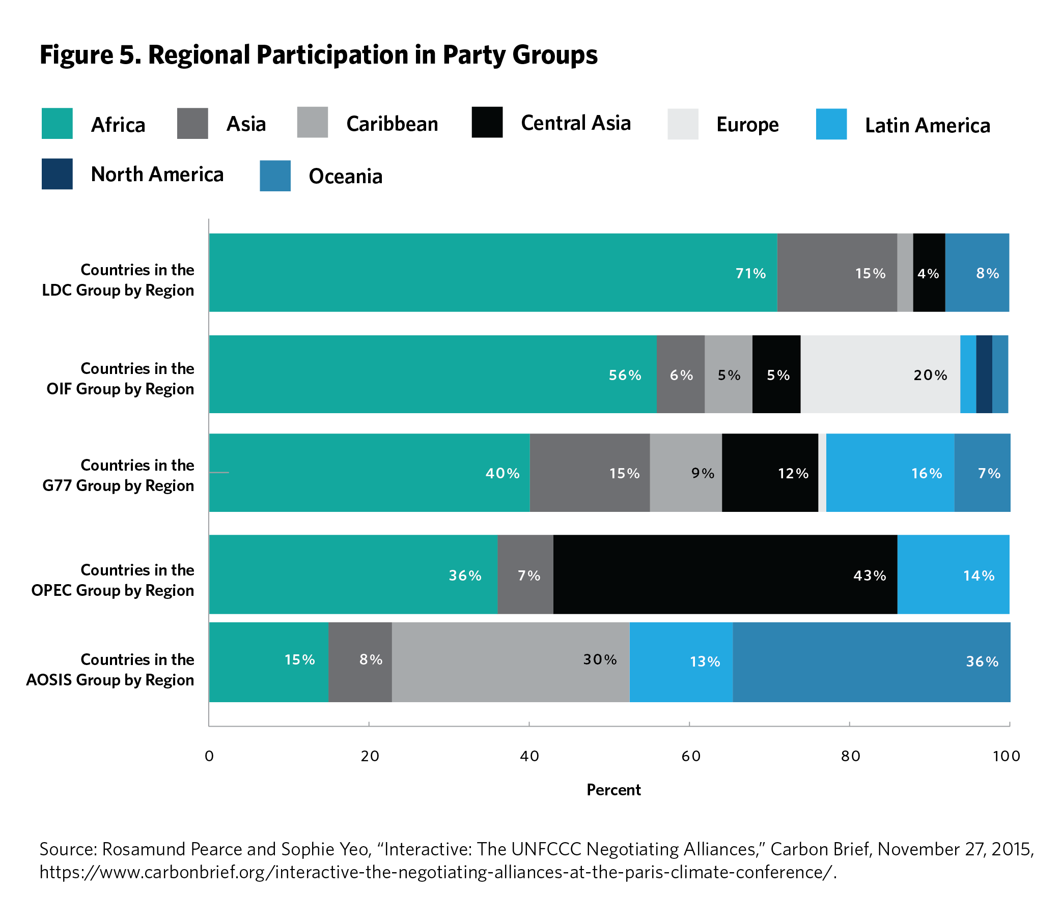 5 Rosamund Pearce and Sophie Yeo, “The UNFCCC Negotiating Alliances,” Carbon Brief, December 3, 2018, https://www.carbonbrief.org/interactive-the-negotiating-alliances-at-the-paris-climate-conference/.
