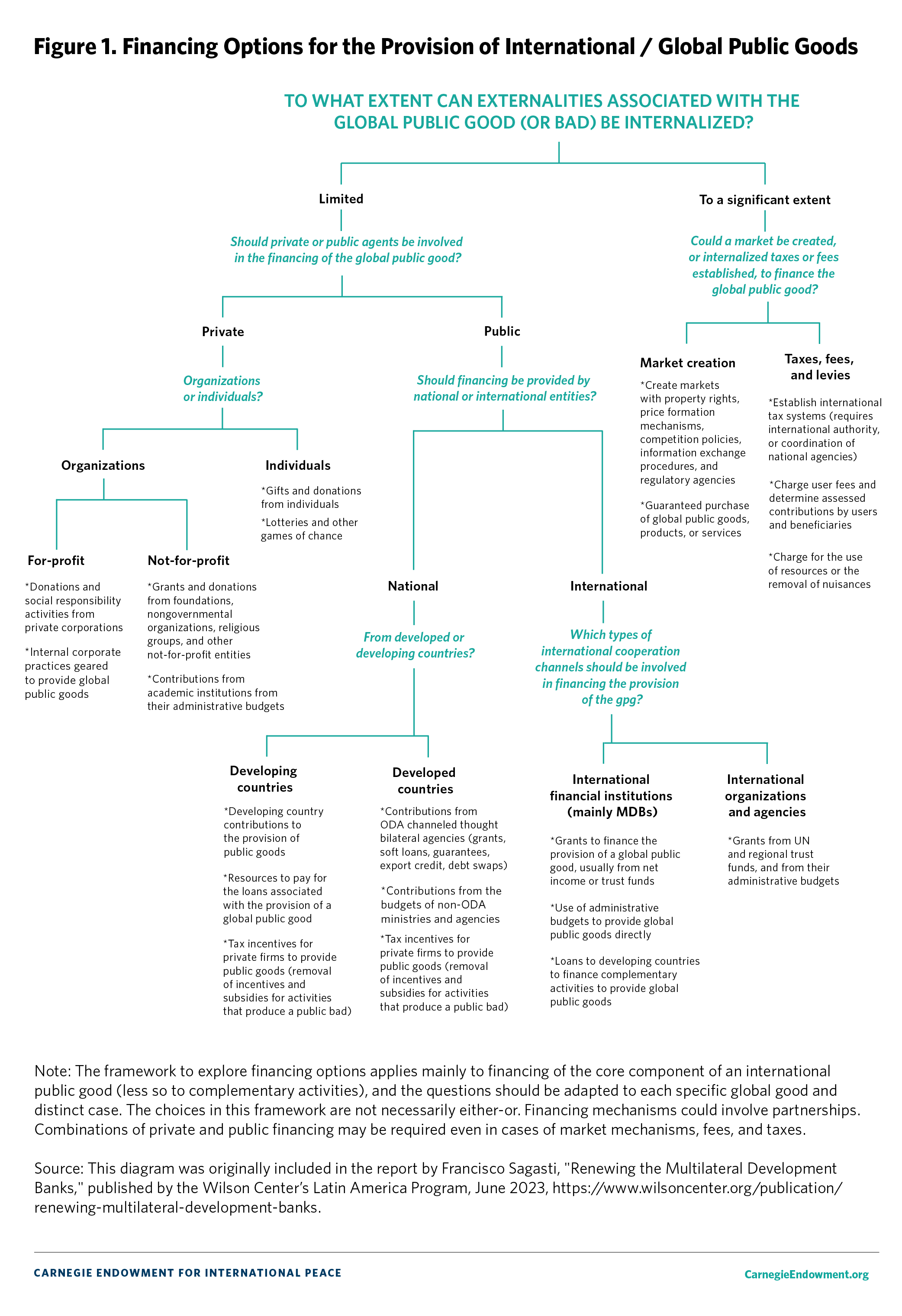 Several financing options can support the provision of international public goods. These range from market creation, taxes, and levies at one end of the spectrum to public budget allocations and private donations at the other (see Figure 1). In the present constrained financial environment of most middle- and low-income countries, it is difficult to expect significant public budget allocations for the provision of international public goods. In addition, the geopolitical and military conflicts and tensions of the fractured global order have led several high- and upper-middle-income countries to reallocate resources toward defense, to the detriment of other areas and particularly international cooperation.