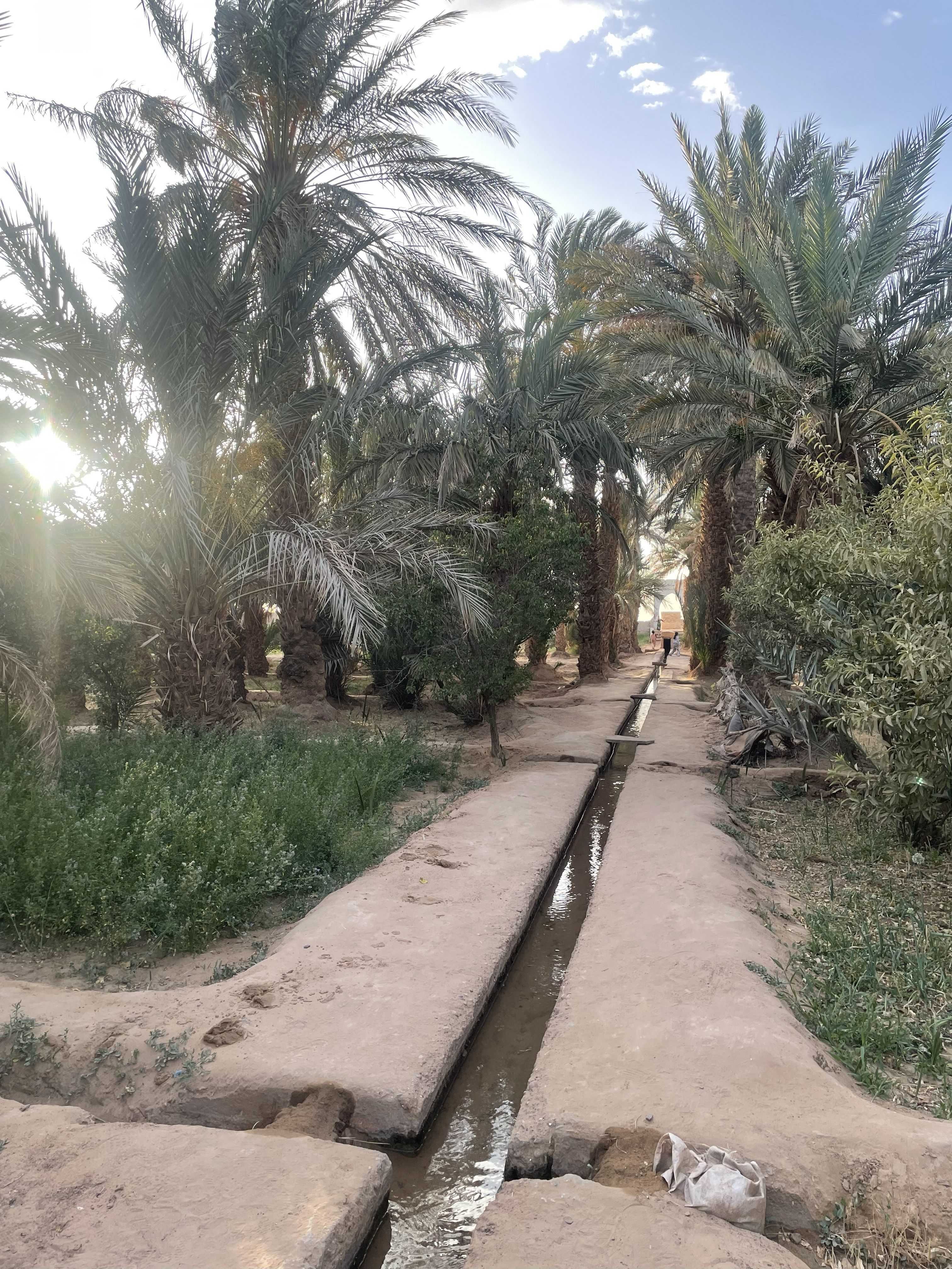 In the khettara system—which has seen a revival in Hassilabied since the early 2000s, thanks to cooperation between local NGOs and the United Nations Development Programme—land is divided between members of the community, who often grow vegetables and date palms.