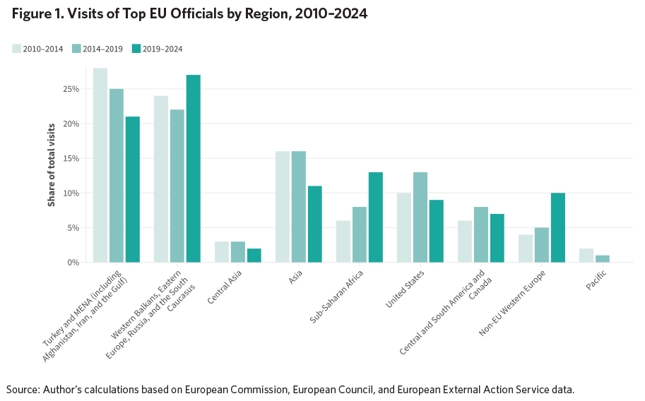 32This and the following calculations are based on data provided by the European External Action Service. Data for the previous institutional cycles are taken from Lehne and Tseminidou, “Where in the World”; and Lehne and Siccardi, “Where in the World.”