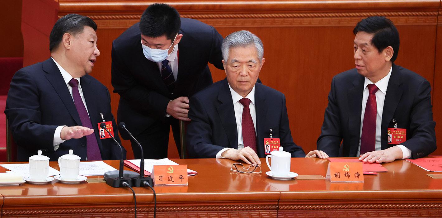 День закрытия ХХ съезда Компартии Китая (КПК) запомнился странной и даже зловещей сценкой, попавшей в объективы камер. После того как делегаты проголосовали за новый состав ЦК, бывшего генсека Ху Цзиньтао (胡锦涛), десять лет руководившего партией до прихода к власти Си Цзиньпина в 2012 году, вывели под руки из Зала народных собраний.