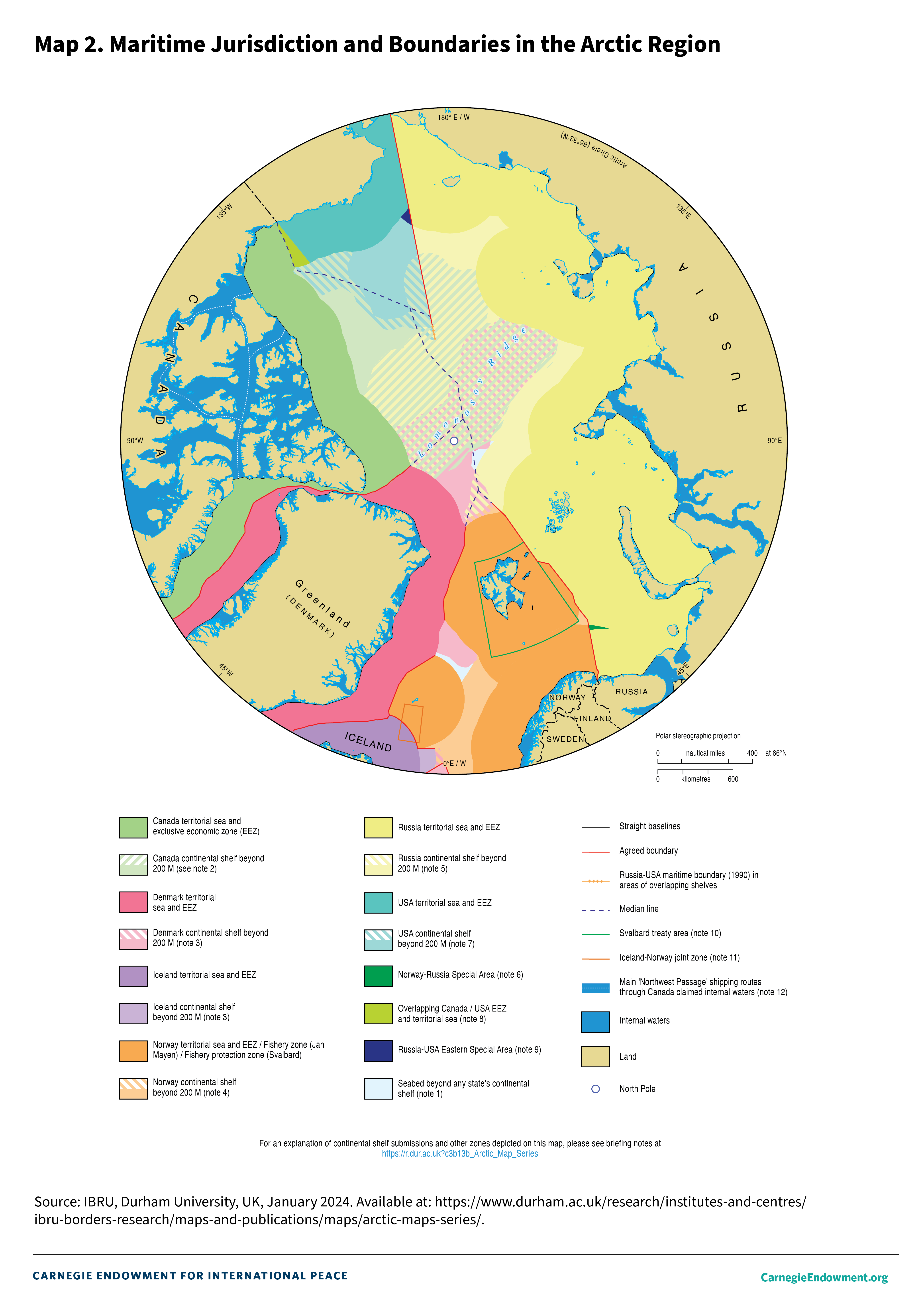 These underlying shifts are just one illustration of how great power competition and rivalry, pursued through a variety of traditional and hybrid forms of military, political, and economic statecraft, are reshaping the Arctic. That interplay is amplified by the lack of a well-established consensus or legally binding agreement between all the Arctic states on the boundaries and limits of the exclusive economic zones that extend into the sea from the coasts of the Arctic nations. That uncertainty is prompting nearly all players to establish their presence and symbolic economic activity as far from their shores as possible, creating competing and overlapping claims to the seabed, waters, and the right to regulate shipping.