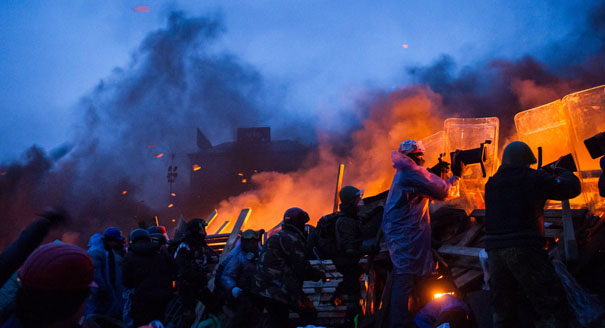 亚努科维奇在 2013 年 11 月做出的决定导致在乌克兰首都基辅爆发了大规模的群众抗议活动,而且几乎立刻就形成了抗议者和警察在这个城市的独立广场上长期对峙的局面。抗议者大多数都是饱受贫困之苦的普通人,他们被外逃官员的腐败——包括亚努科维奇家人——所激怒。对于这些人来说,与欧盟合作也许是改变他们这种毫无尊严的生活的一条出路。如今,那扇大门突然关闭,失去了希望,这对于他们当然是一个令人痛苦的重大打击。