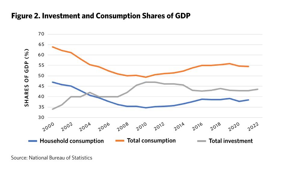 China is different. Investment rose from 24 percent of GDP in 1990 to 40 percent by 2002 and to 47 percent by 2010. It then declined to 43 percent by 2019 and has been between 43 and 44 percent during the COVID-19 period.3