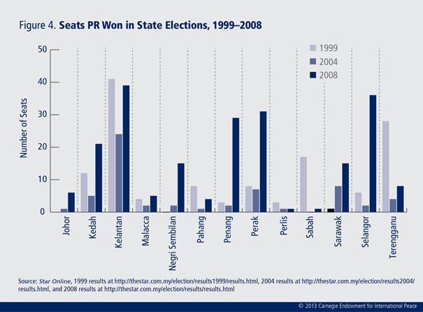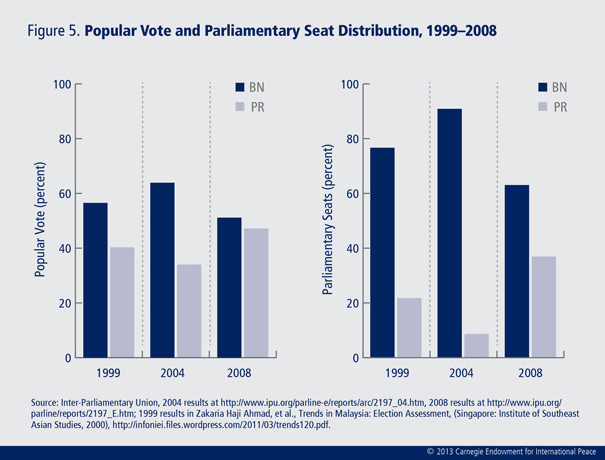 Although according to the latest figures, BN, with 137 seats, still had a commanding lead in parliament, PR came away from recent elections with the most seats it has ever had—76 (see figure 1).