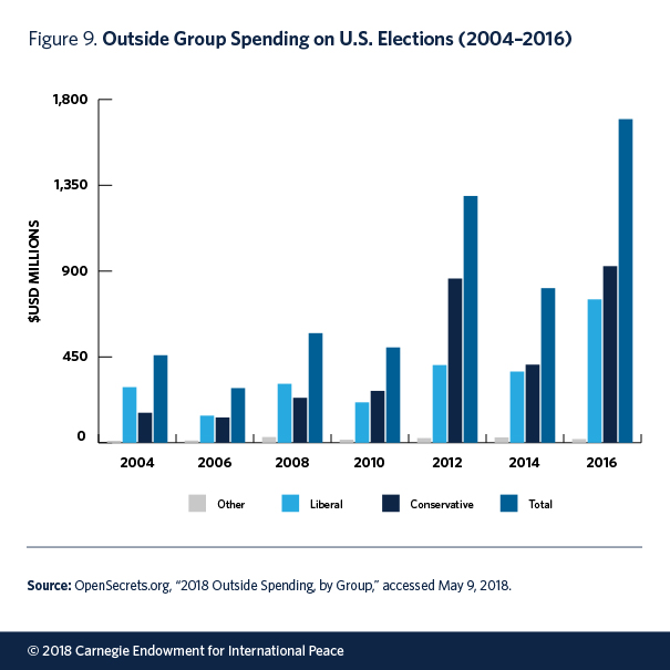 90 “Total Outside Spending by Election, Cycle, Excluding Party Committees,” Open Secrets, https://www.opensecrets.org/outsidespending/cycle_tots.php.