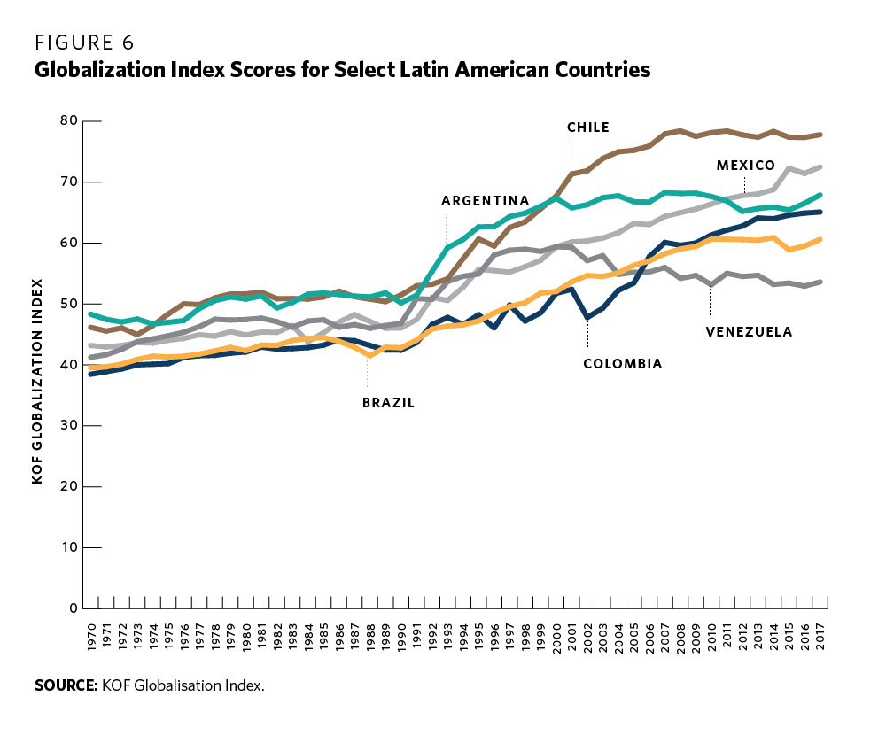 The global pandemic has accelerated new thinking on economic policies. Indeed, planning is back, and policymakers are rethinking a new mode of capitalism: stakeholder capitalism. Against this backdrop, Latin America needs to find the appropriate balance between economic openness and safety nets to smooth the adjustment process. It also needs to improve the environment in which trade operates, particularly infrastructure, information and communications technologies, transport service, connectivity, and the quality of ports. Customs procedures and border control should be simplified. Much cooperation is needed on regulatory issues, bilateral investment, trade facilitation, and the harmonization of rules of origin (see figure 6). In the same way, growing global concerns about sustainability and deforestation are a reality, and attacking them as undue meddling in internal affairs or as necessarily bad for business—ideas promoted by Brazil’s Bolsonaro—are unlikely to help the region. Rather, the focus should lie on how Latin America can use this new global context to its advantage and integrate sustainability into governments’ overall economic strategies.